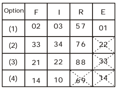 As shown in given figure , all the values for word FIRE are matched in only option ( 1 ) for every letter . So , the set for the word FIRE will be 02, 03, 57, 01 .From matrix , option ( 1 ) is correct .