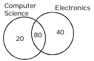 - In a class, there are 80 students who study both Computer Science and Electronics. While 100 students study Computer Science, 120 students study Electronics. How many of them study Computer Science only?