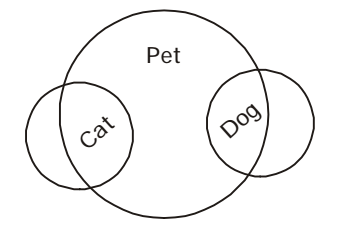 - Which of the following figures represents the relationship among DOG, CAT and PET?