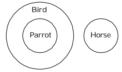 - Which one of the following diagrams best depicts the relationship among horses, parrots and birds?