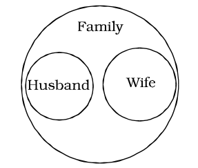 - Which of the diagrams given below correctly represents the relationship among husband, wife and family?