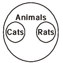 - If each circle represents a class of objects/ideas, written below then find out the answer figure which illustrates better the relationship among them: Cats, Rats, Animals