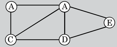City A is connected by 2 roads, B by 4 roads, C by 3 roads, D by 3 roads and E by 2 roads.